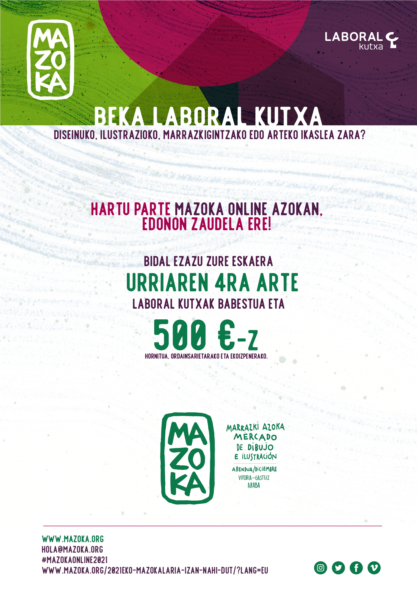 Berriz ere Mazoka sektore grafikoko balio berriak ezagutzeko tresna izango da, Laboral Kutxak babesten duen eta diseinuko, ilustrazioko, marrazkigintzako, arteko edo animazioko ikasleei zuzenduta dagoen beka baten bidez
