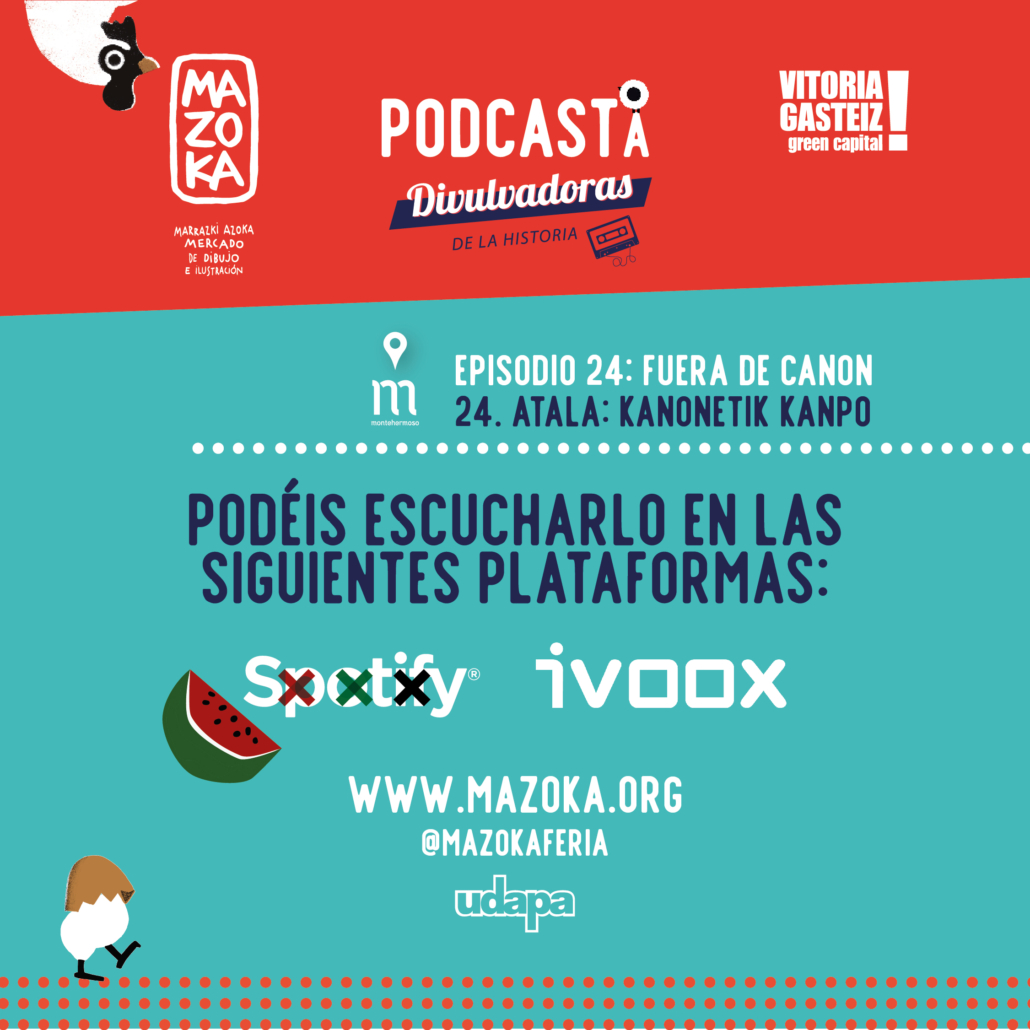 La historia las ha ocultado y el presente dificulta el trabajo de autoras que reclaman su lugar en espacios masculinizados como el del cómic. Por ello, en colaboración con Isabel Mellén, filósofa e historiadora del arte y Naiara López de Munain, periodista de radio, o lo que es lo mismo “DIVULVADORAS DE LA HISTORIA” de forma previa al Mazoka se grabó en directo, dentro del Centro Cultural Montehermoso, el sábado 14 de diciembre el Podcast “Fuera de Canon”.