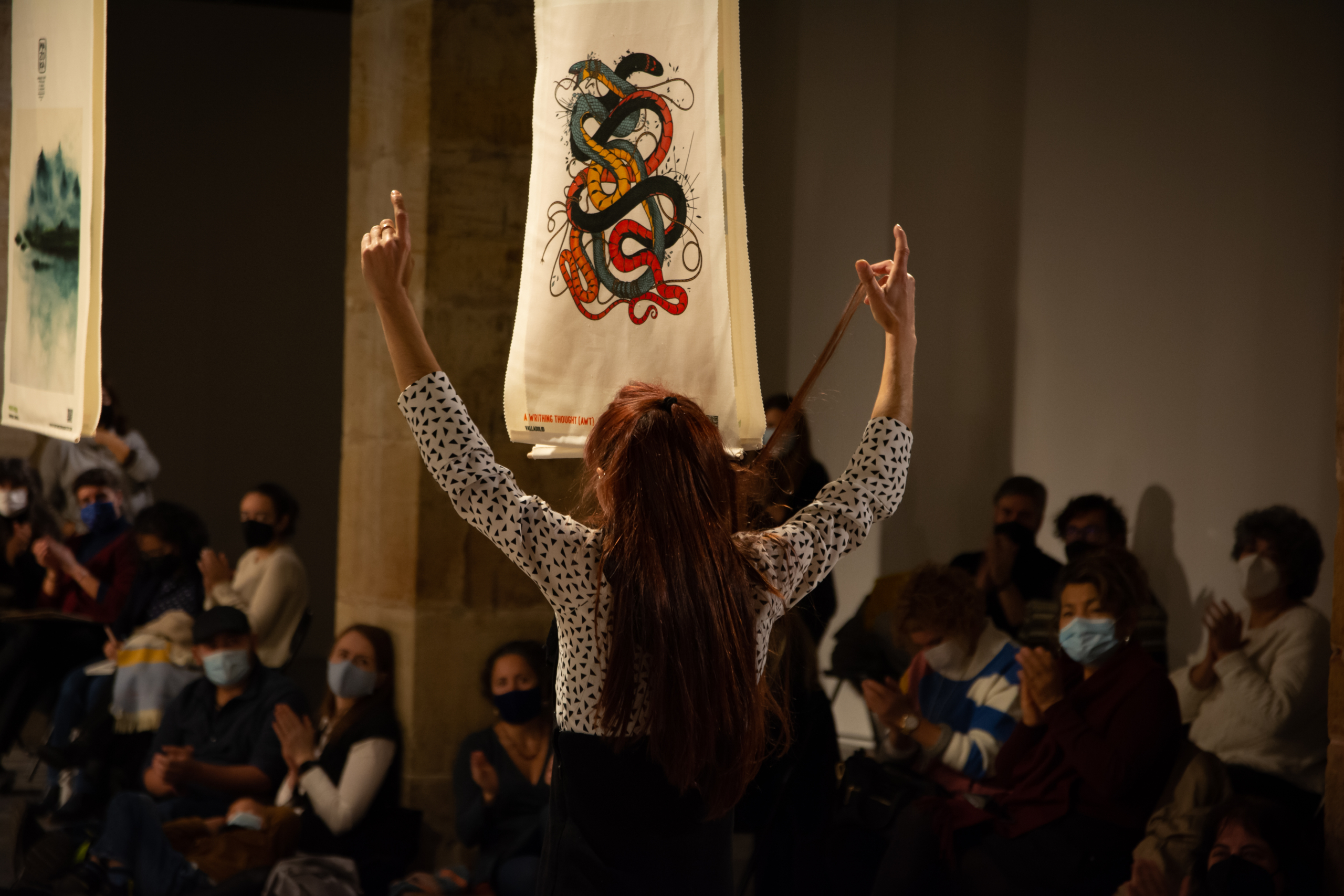 Askoa Etxebarrieta, bailadora de flamenco gasteiztarra, nos regalará un espectáculo “ad hoc” creada desde la experimentación y la fusión aprovechando la magia y sonoridad de un espacio único como el Depósito de Aguas, interactuando a su vez con el bosque de telas colgantes creado con las obras de las y los mazokalaris, entre las que fluir, bailar y dejarse acompañar.