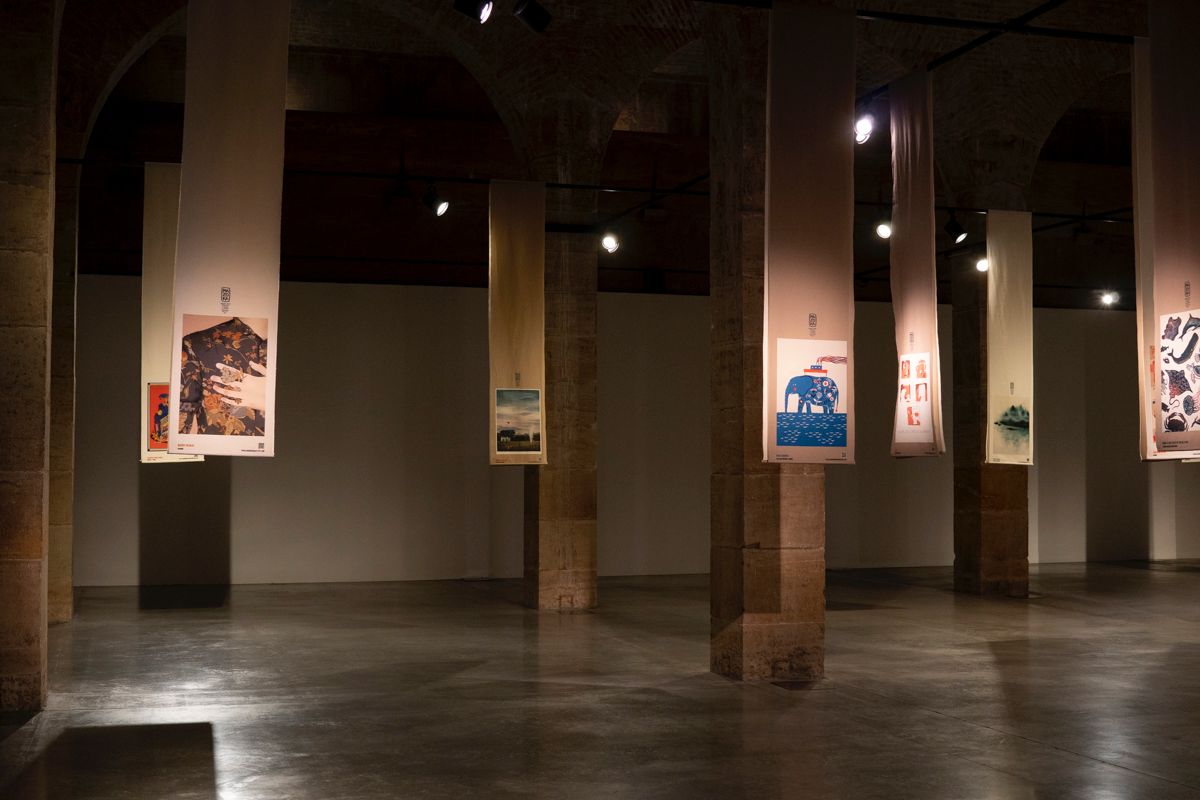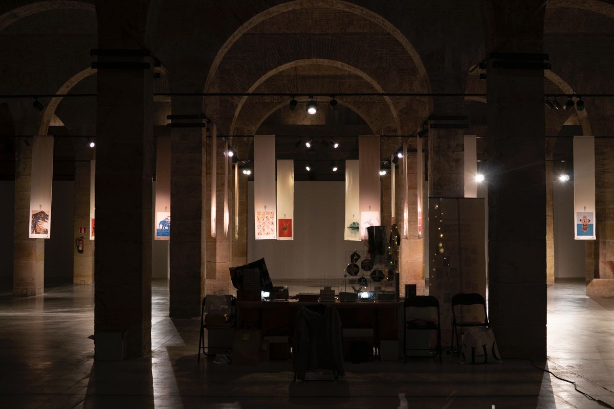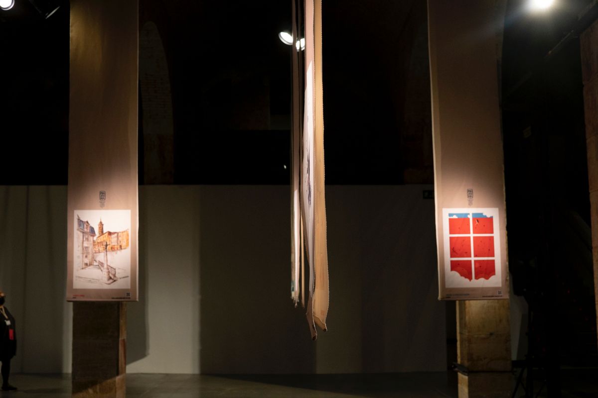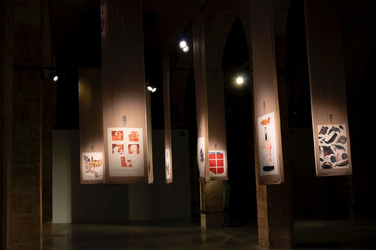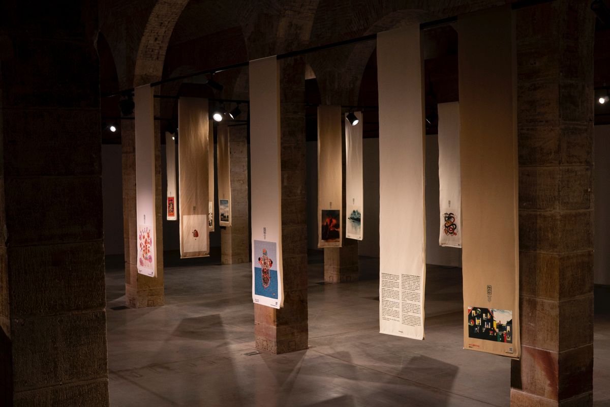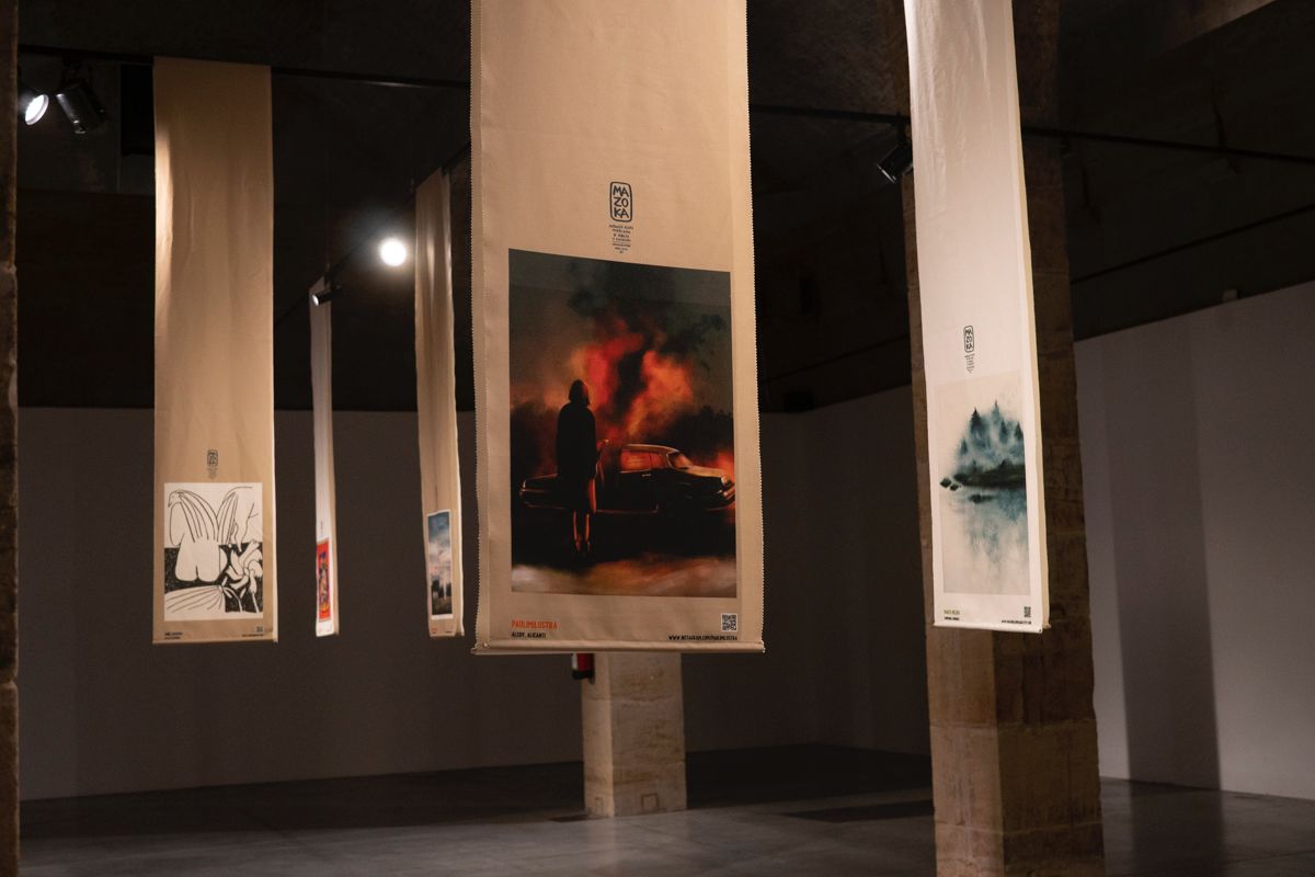 Este año nos alejamos del clásico formato papel y la muestra recrea un bosque de lienzos textiles en el que la persona que se acerque a visitarla pueda sumergirse y experimentar un viaje por la historia de cada obra, como un laberinto que desentrañar y con el que jugar, un barrio que recorrer. Un paseo por 40 obras con diferentes técnicas, soportes y estilos, así como un código QR desde el que disfrutar in situ “del puesto” de cada Mazokalari.
