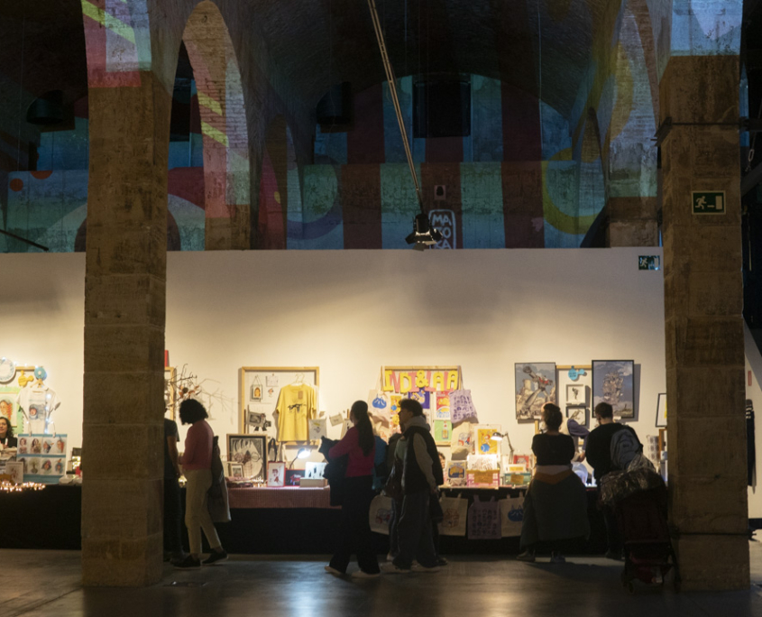 A las puertas de la Navidad, del 16 al 18 de diciembre, el espacio abovedado del Depósito de Aguas del Centro Cultural de Montehermoso se llenará de puestos con originales en todo tipo de técnicas, soportes y medidas: cerámicas, zapatillas pintadas a mano, parches o sudaderas ilustradas; joyería, vajilla, alfombras, lámparas quitamiedos, posters y pegatinas; reproducciones en Glicé y papel Xuan, serigrafía, risografía, hueco-grabado y litografía; libros de artista, libros pop up, libros infantiles, de historia, comics o fanzines; infografías científicas, ilustración en madera, en piezas antigüas de reloj o en herramientas variadas; mapas, katilus, azulejos, dioramas y barajas de póker; washi tapes y llaveros; matrioskas, calendarios y todo tipo de objetos de papelería como agendas, cuadernos, postales etc. Todo ello en ediciones limitadas y de la mano de sus autoras y autores.