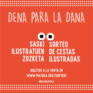 Durante todo el festival, podrás adquirir los números de la suerte en el stand de la organización para el sorteo de tres cestas ilustradas con obra original, láminas y aplicaciones donadas por los mazokalaris Y MAZOKA LAGUN COMO CAFÉS LA BRASILEÑA, ANOTHER PRESS, KIWI MAGAZINE Y REVISTA PRINCIPIA Y PRINCIPIA KIDS.